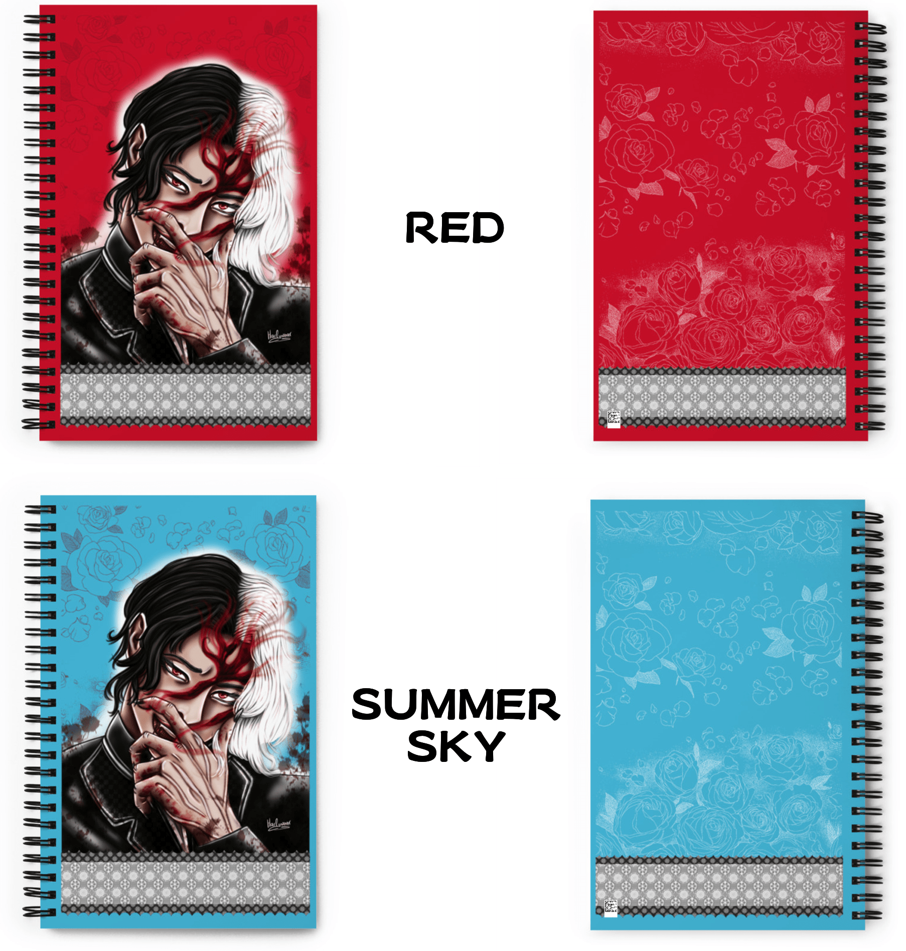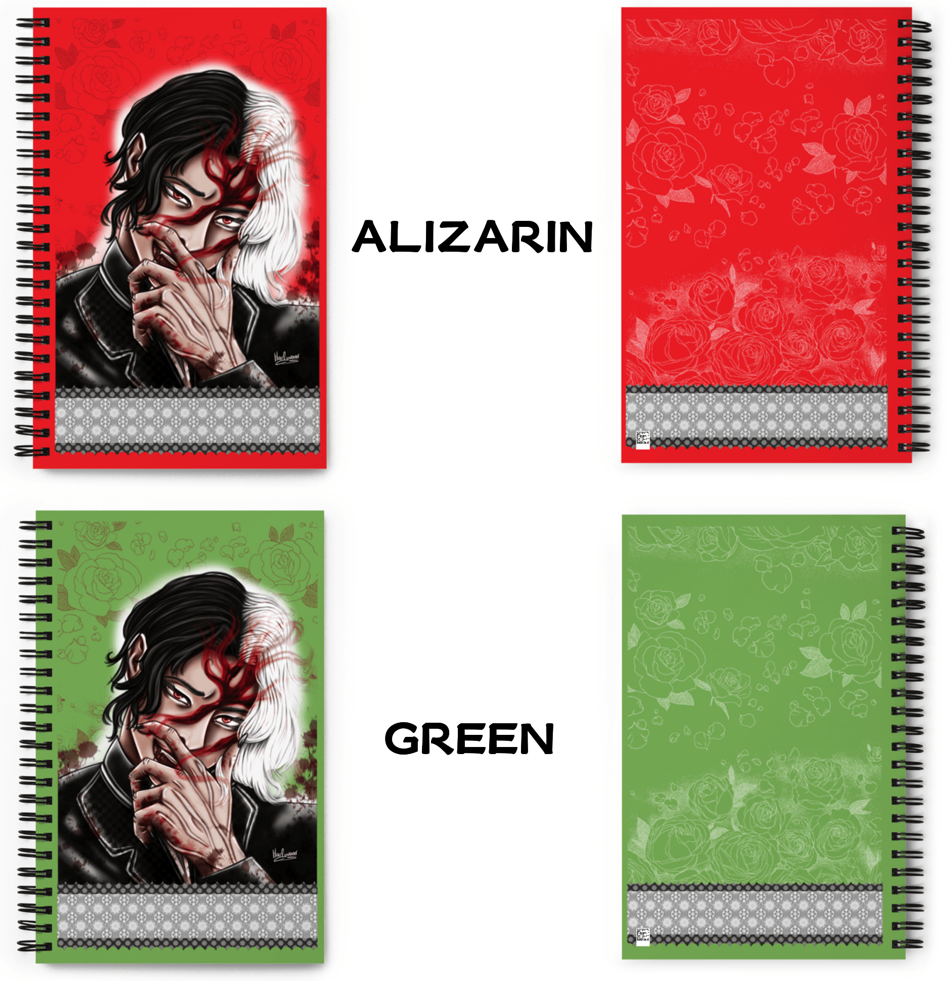 Simple notebook with a cover page inspired on the villain Muzan from 'Kimetsu no Yaiba' by Koyoharu Gotōge.