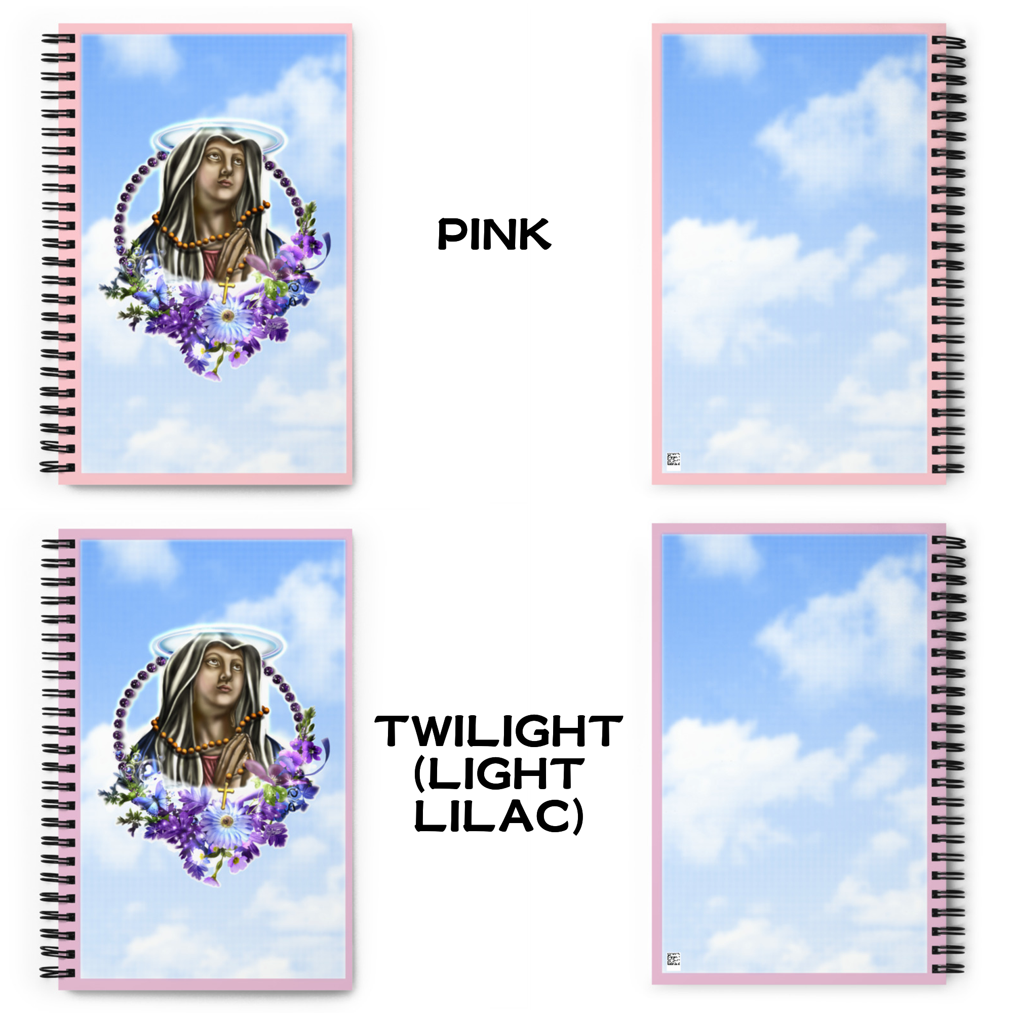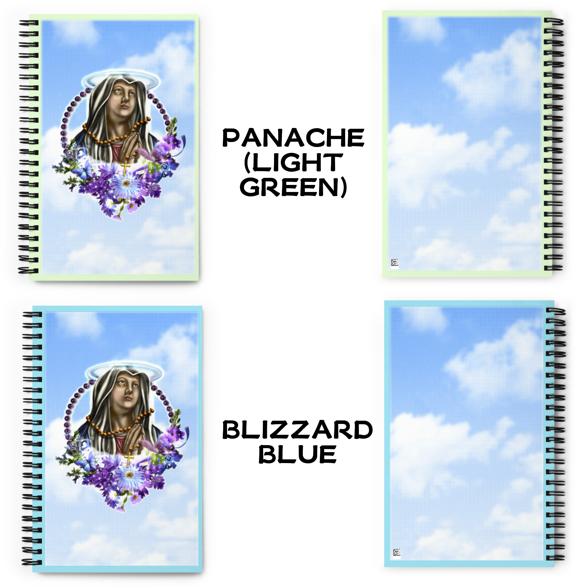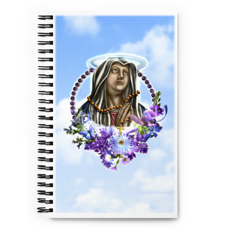 Simple notebook with a digital portrait inspired by Jesus Mother, Maria.