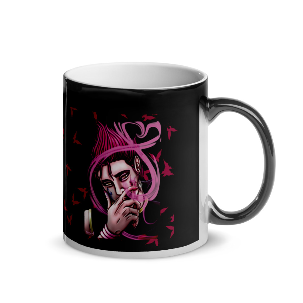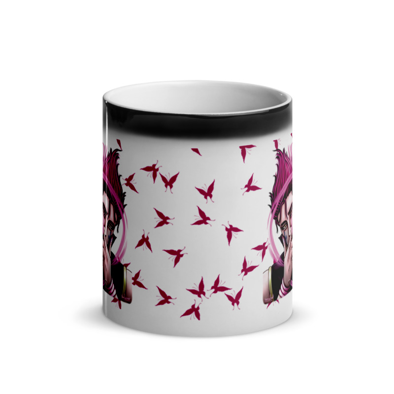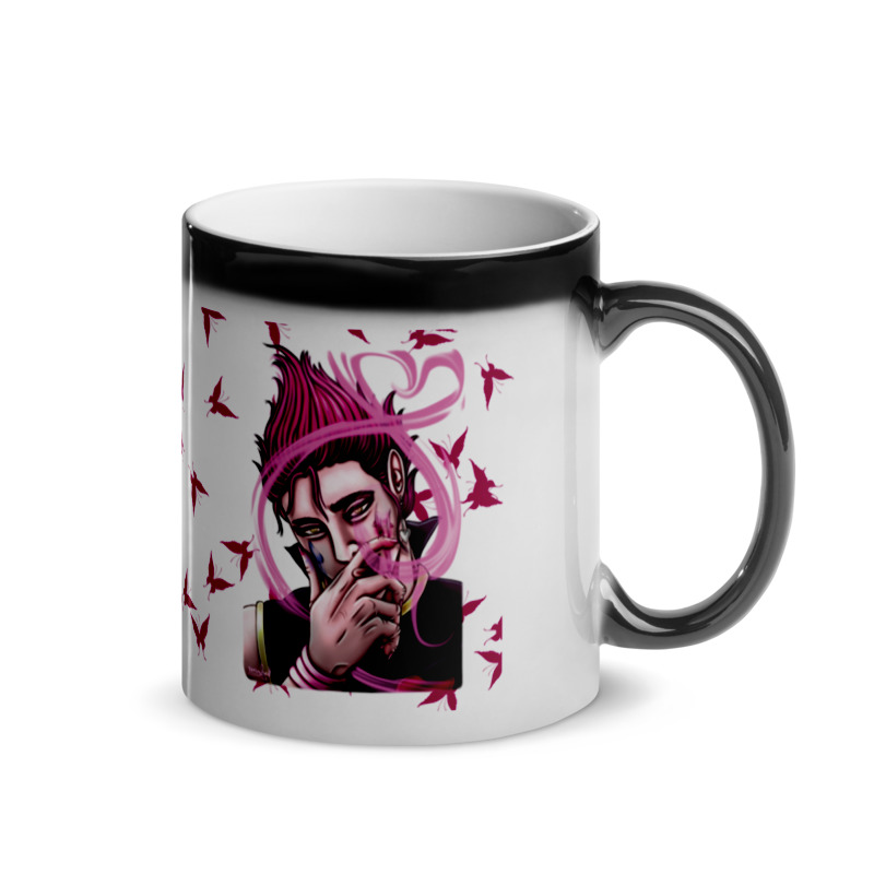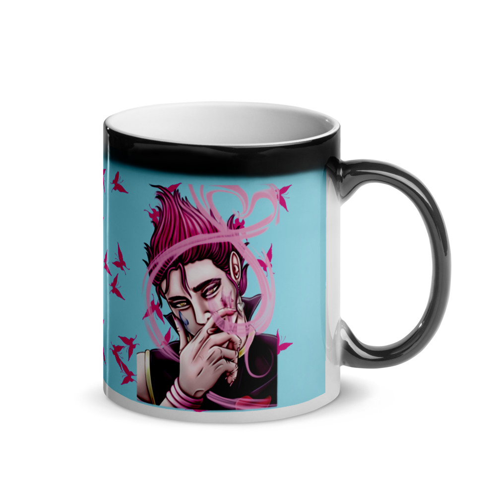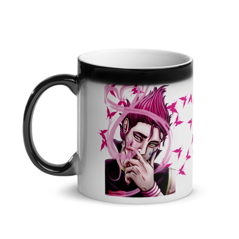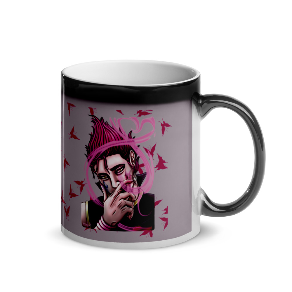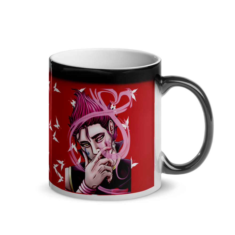 Simple magic mug with a drawing of Hisoka from 'Hunter x Hunter'. (The mug does not contain the black line above the drawing.)