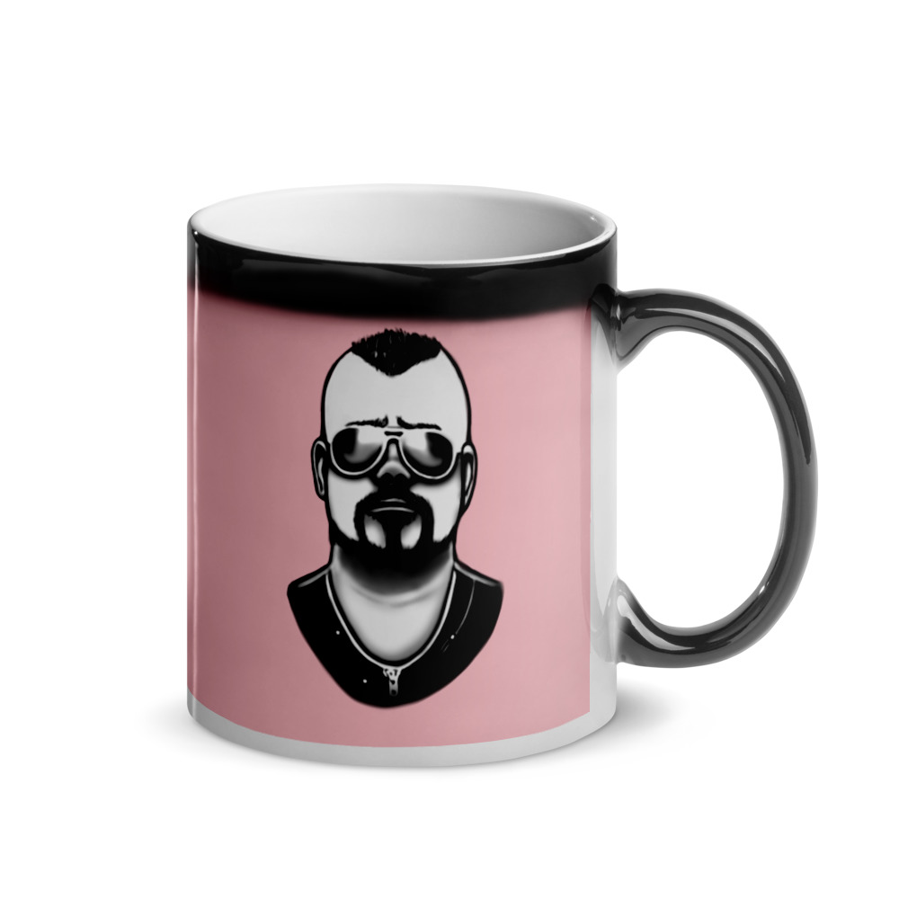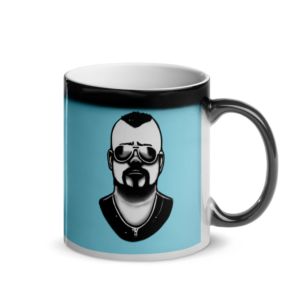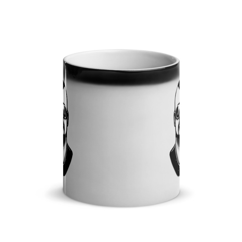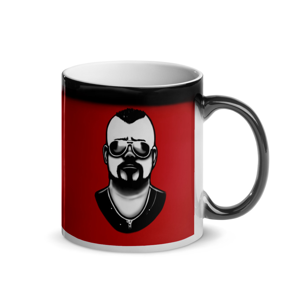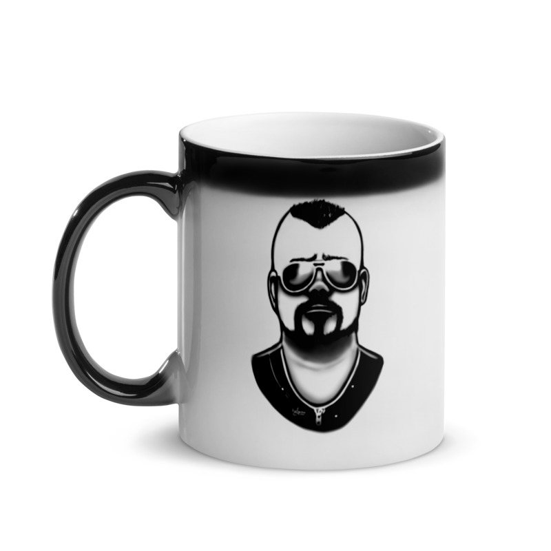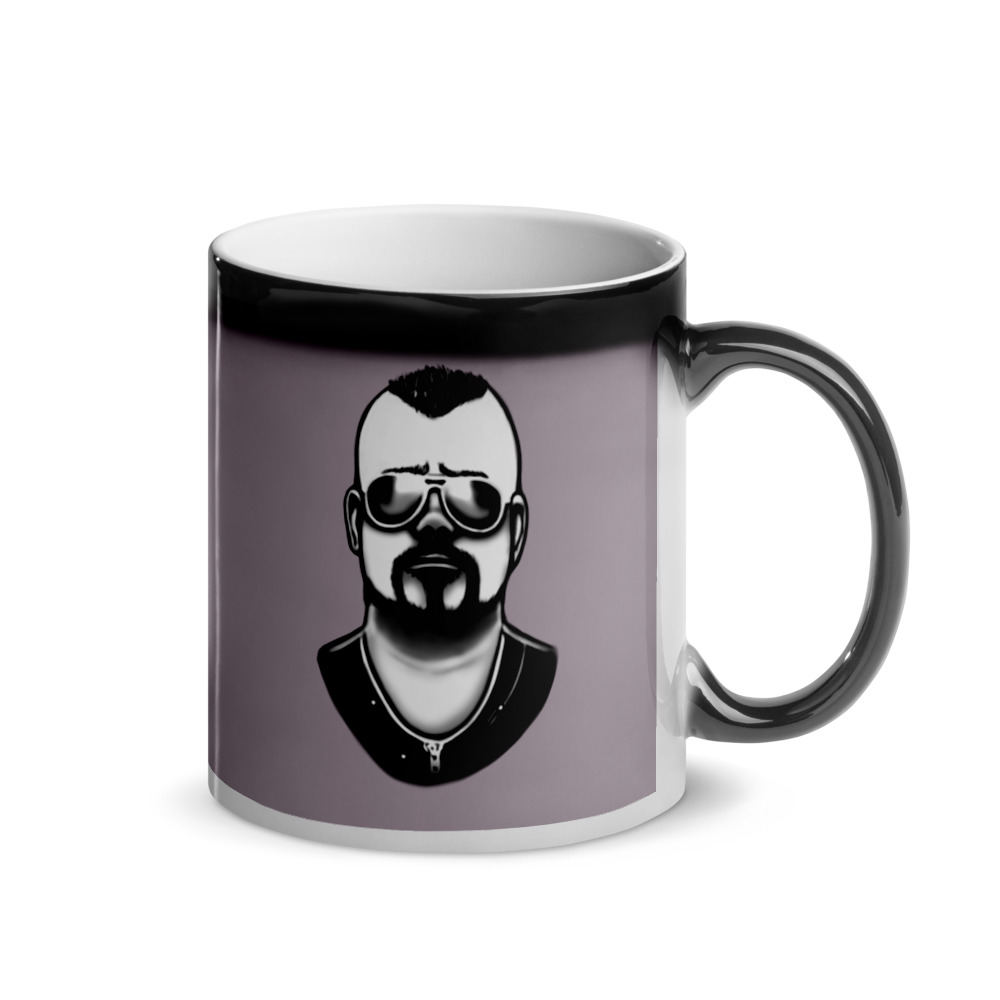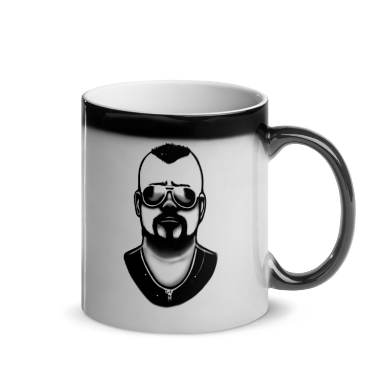 Simple magic mug with a drawing of Joakim Brodén from 'Sabaton'. (The mug does not contain the black line above the drawing.)