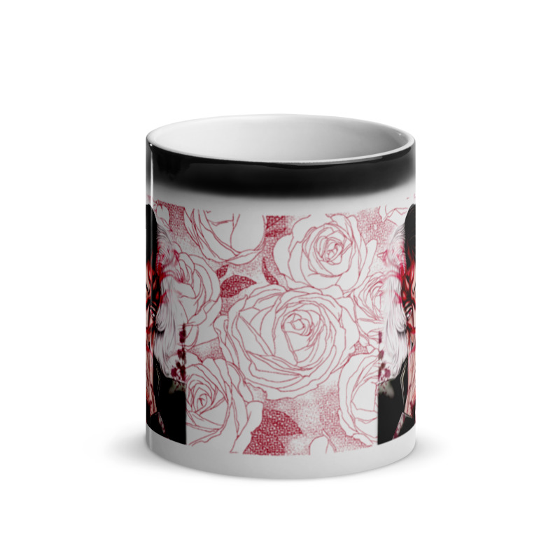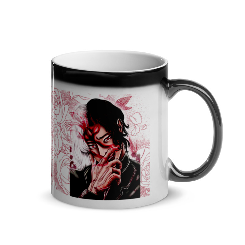 Simple magic mug with a drawing of Muzan from 'Kimetsu no Yaiba'. (The mug does not contain the black line above the drawing.)