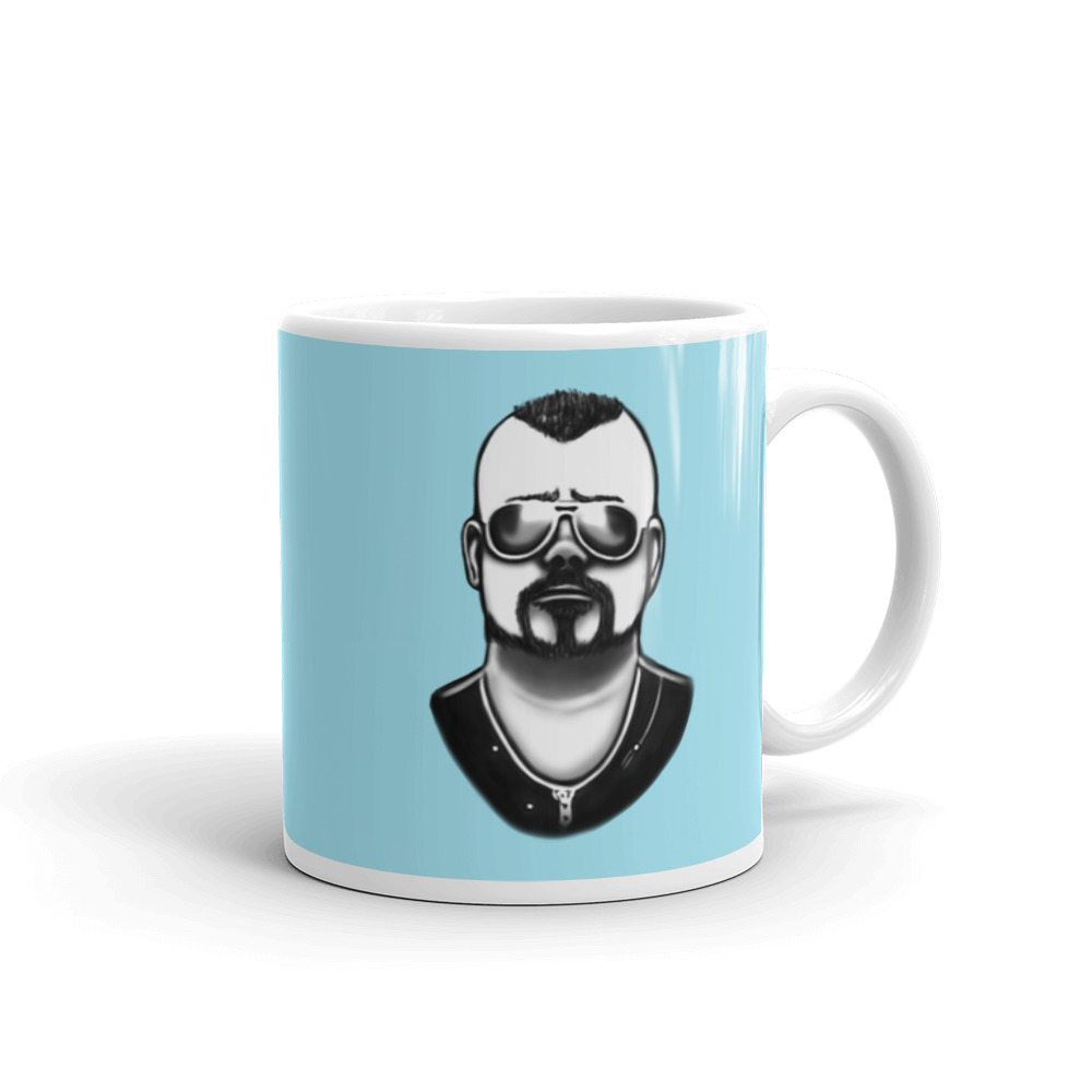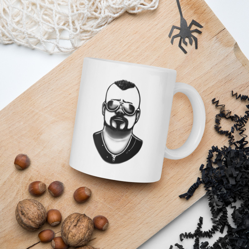 Simple mug with a drawing of Joakim Brodén from 'Sabaton'.