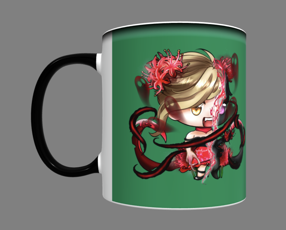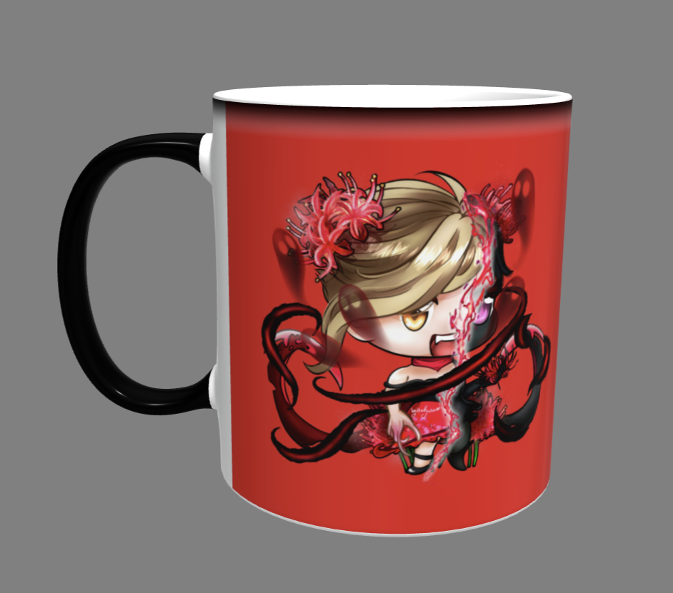 Simple magic mug with a drawing of Evelynn, from 'League of Legends', Tango skin.